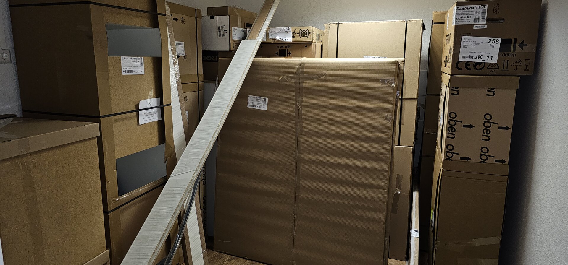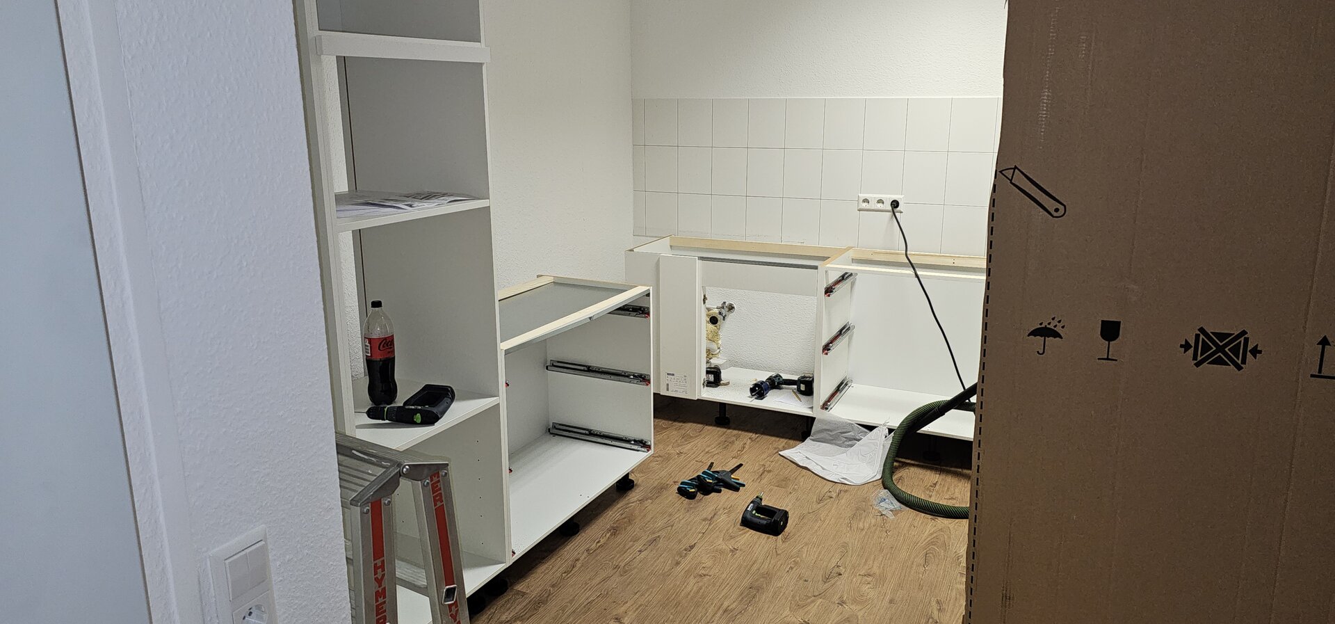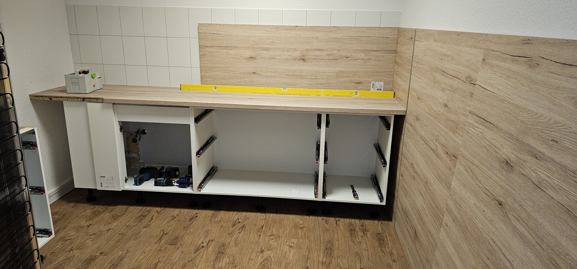 - Lieferumfang prüfen: Schränke, Fronten, Beschläge, Arbeitsplatten