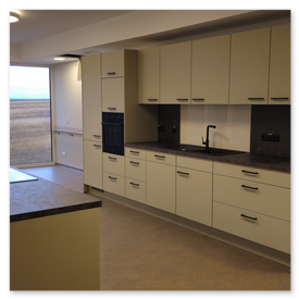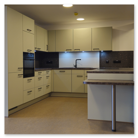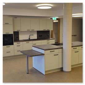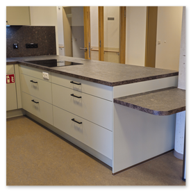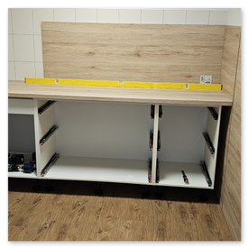 - Arbeitsplatten zuschneiden, Geräte fachgerecht einbauen