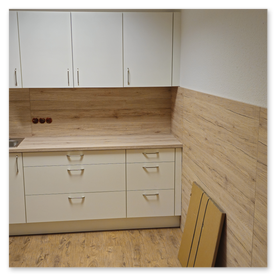 - Zuschneiden und Befestigen von Arbeitsplatten inkl. Ausschnitte