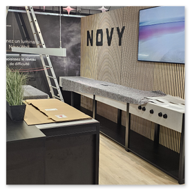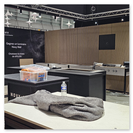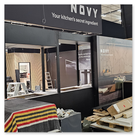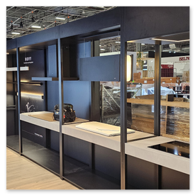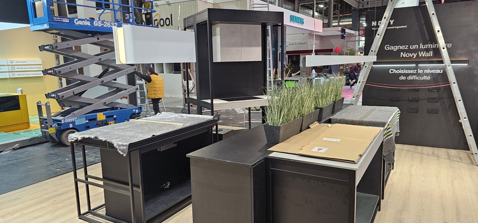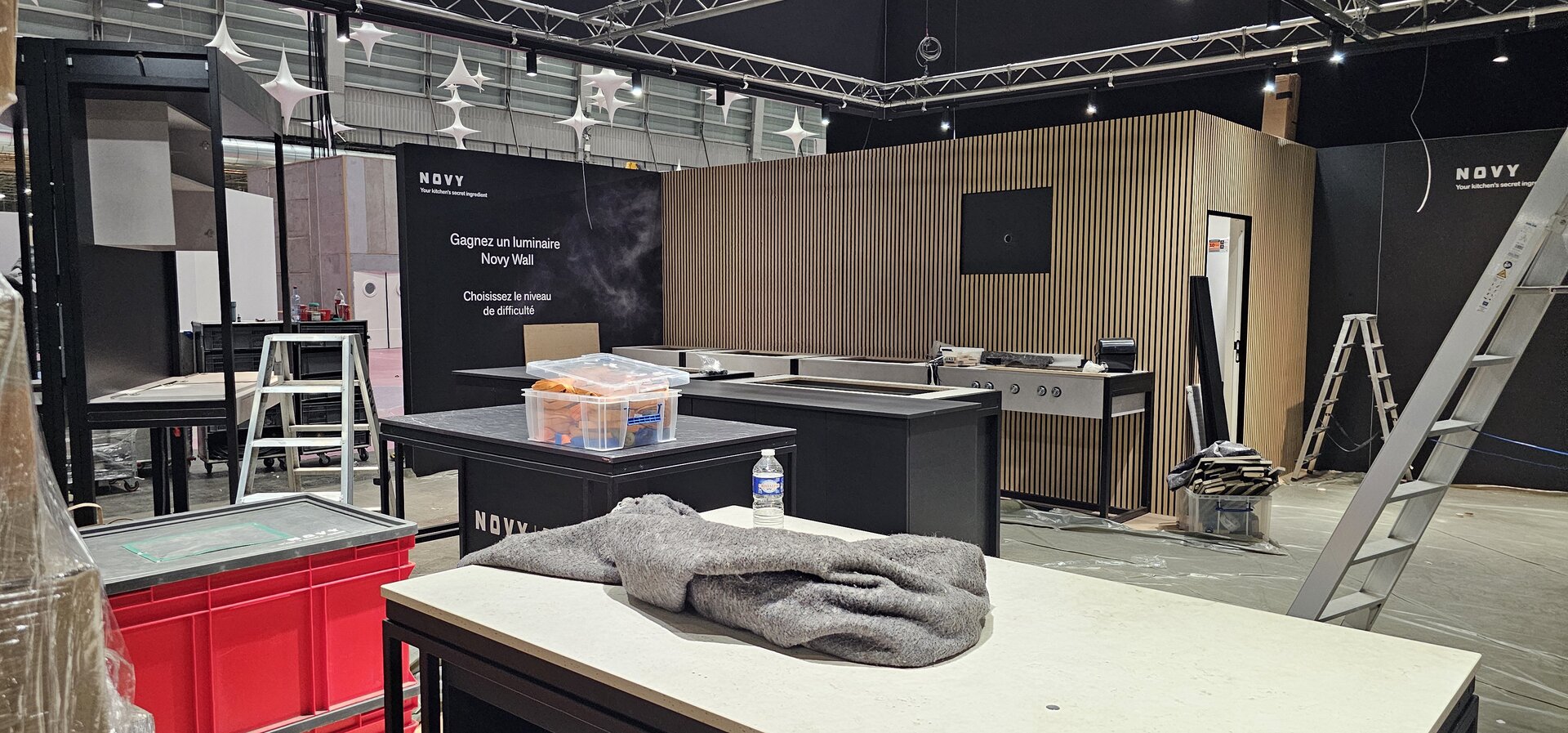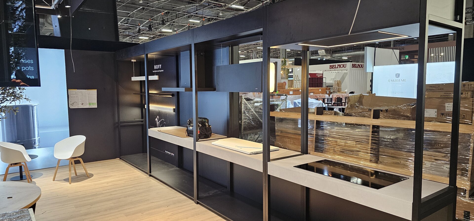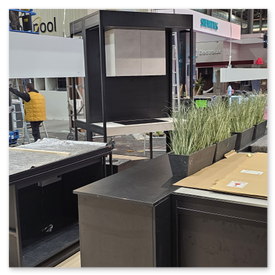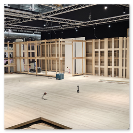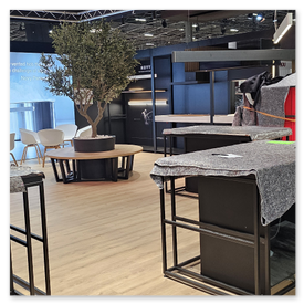 Wir kombinieren Holz, Metall, Verbundplatten und hochwertige Oberflächen für langlebige, wiederverwendbare Stände. Grafiken und Folierungen werden passgenau vorbereitet.